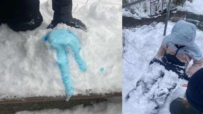Last week in our science lesson we used the snow for an experiment. We were building snow vulcanos with explosions. Later on we were covering each other with snow. What a fun snow day.