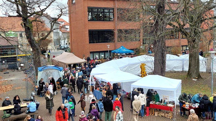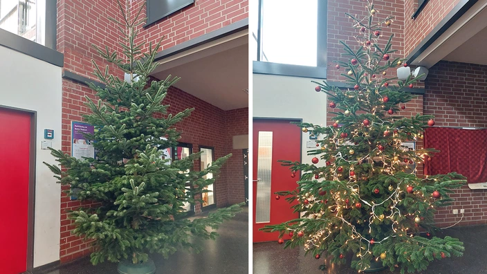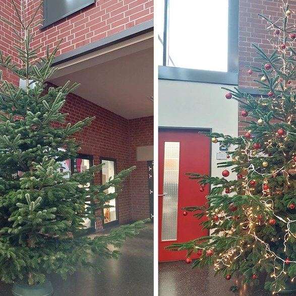 And, of course, large Christmas trees can be found in all our schools again this year. Just in time for the Christophorusmarkt, the decorated tree was also set up in the high school, forming the shining centerpiece of the school building. Special thanks go to Graf von der Schulenberg for the wonderful Christmas trees!