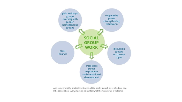 The targeted initiation and support of group dynamic processes is another important task of school social work. Social group work can take various forms:
